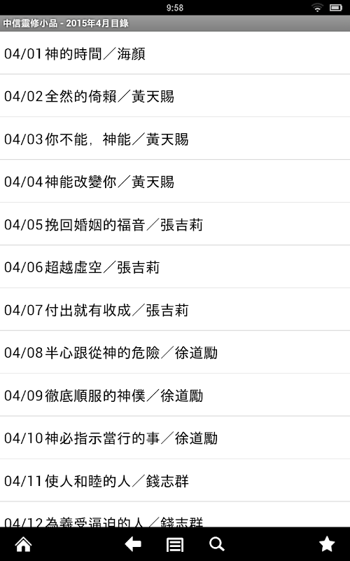 中信灵修小品(CCM Devotion),中国信徒布道会(Chinese Christian Mission, CCM)出版,每天提供一则精简信息,帮助你灵修亲近神: