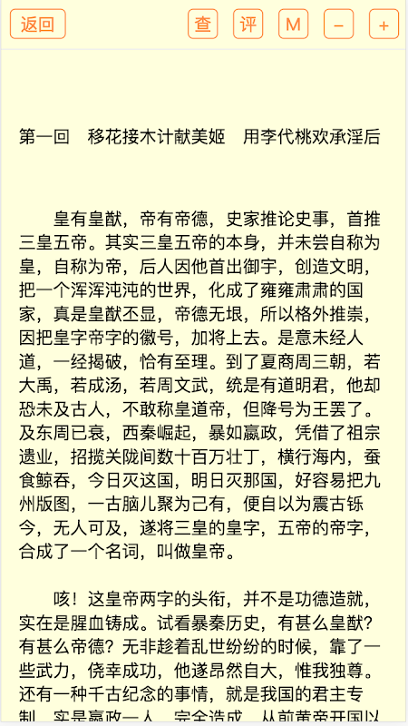 本应用收集了蔡东藩先生写的《中国历朝通俗演义》,时间跨度自秦始皇到民国九年。自带听书功能,支持国语和粤语。