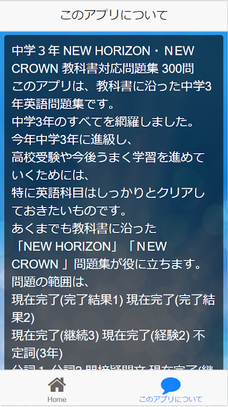 معلومات 中学3年 NEW HORIZON・NEW CROWN 教科書対応問題集 300問 APK