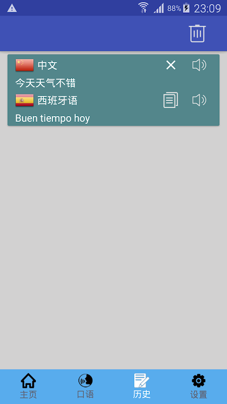 يدعم البرنامج الترجمة الإسبانية للترجمة الصينية والصينية للإسبانية ، وسرعة الترجمة عبر الإنترنت سريعة.