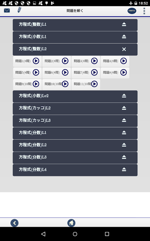 المعادلات من المشاكل الحسابية، صحيح أو عشري، جزء من المشكلة قوسين، هناك LV4 الأساسي تصل إلى 380 أسئلة أو أكثر من المشاكل الصعبة قليلا من LV1 المشكلة.