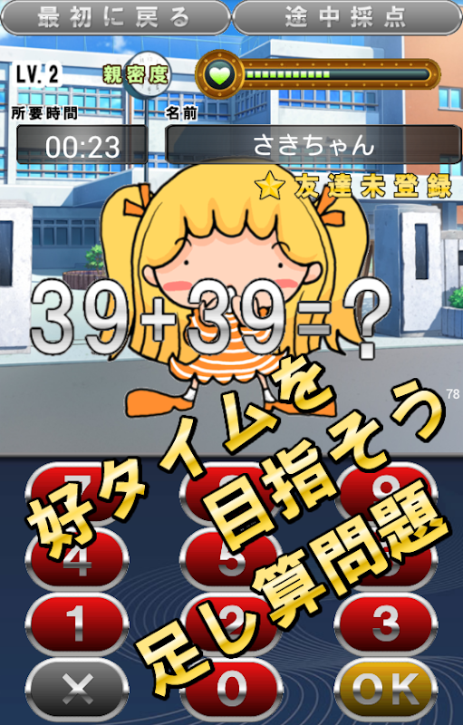 主婦必見の脳トレアプリ。簡単な足し算、引き算、何割引き、何%引き等々の問題を楽しく解いて脳の活性化へ。町を舞台に問題を解いて友達100人を集めよう!