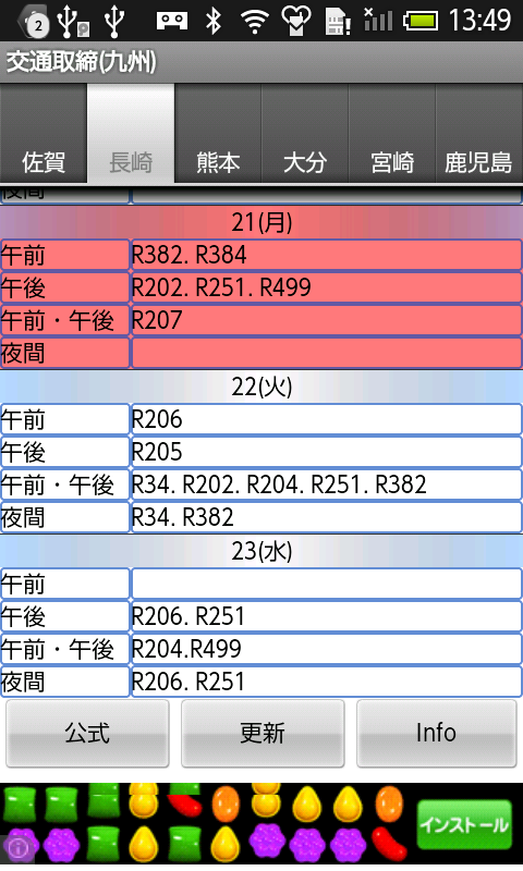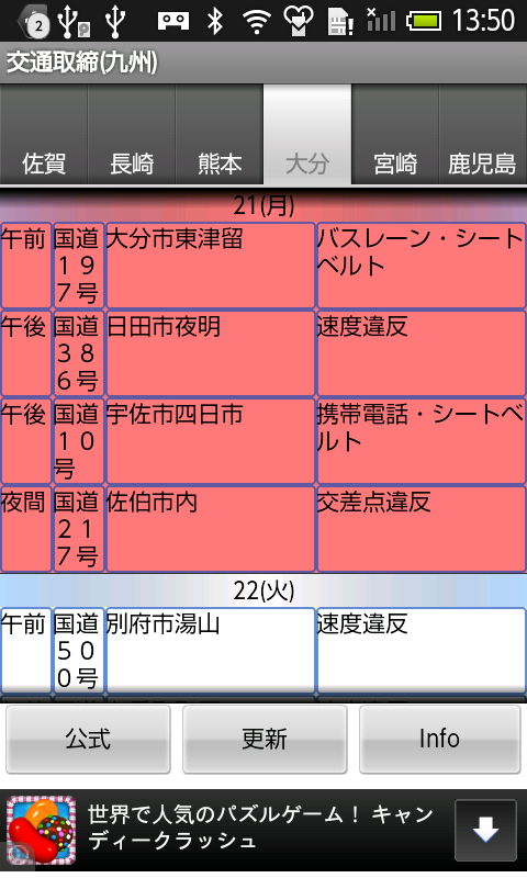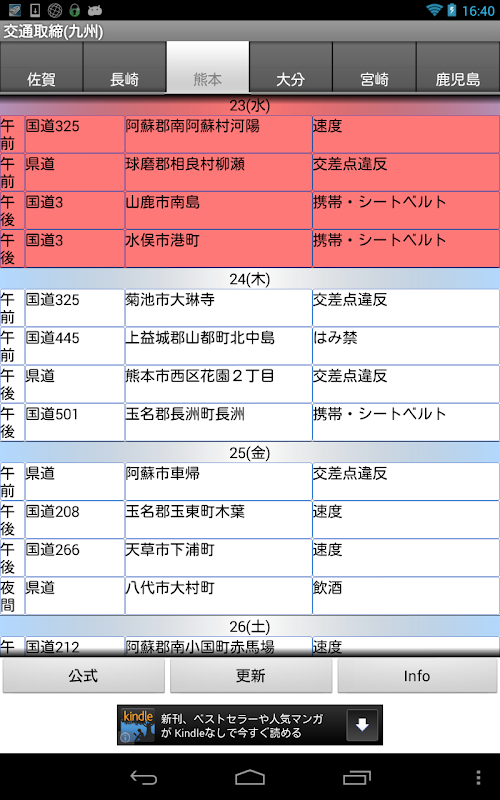 九州エリア(佐賀県、長崎県、熊本県、大分県、宮崎県)の公開交通取締情報を確認するアプリです。