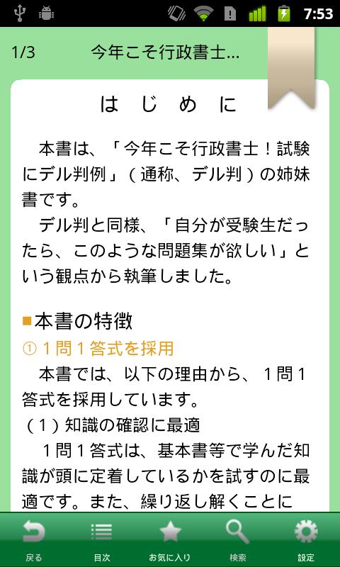 本アプリと一緒に書籍版『今年こそ行政書士!試験にデル判例』を組み合わせれば、書籍版『デル判』に掲載してあるものにはマークをつけてありますので、その都度、判例に当たることもでき、法律の総合的な理解力アップがはかれることは間違いなしです。