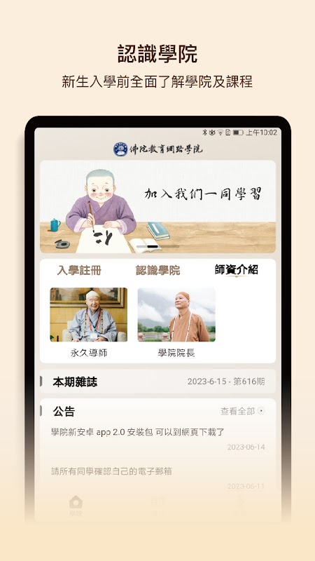 يتبع تطبيق "Buddha Education Network Academy" تعاليم "التدريس لمدة تسع سنوات" للراهب القديم جينغكونغ. وتستند الدورات بشكل أساسي إلى المحاضرات عبر الإنترنت ، ويتناقش الطلاب مع بعضهم البعض كملحق. طريقة التدريس هي استخدام دراسة متعمقة طويلة الأمد والتركيز على الاستماع إلى الكتب المقدسة ، وبعد كل دورة يجب تقديم تقرير عن تجربة التعلم كتحصيل أكاديمي. بعد الانتهاء من الدورة كل عام ، يمكنك الترقية والدخول إلى المرحلة التالية من الدراسة. نرحب بالجميع للدراسة عبر الإنترنت معًا ، وتشجيع بعضهم البعض ، ولن تكون وحيدًا في التعلم.