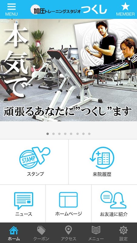 このアプリでは、加圧トレーニングスタジオつくしの色々な情報やアプリユーザー限定のお得なサービスが手に入ります!