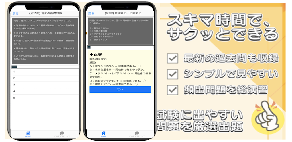 باستخدام هذا التطبيق ، يمكنك الدراسة بكفاءة من خلال التخصص في مجالات "الفيزياء الأساسية والكيمياء الأساسية" التي تظهر كثيرًا في امتحان B4 لمشغل المواد الخطرة.
