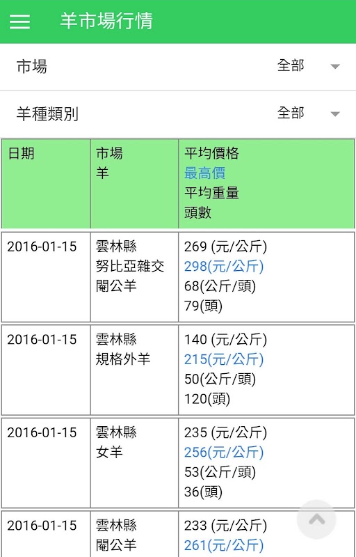 1.毛豬,羊,白雞肉,蛋,鵝,鴨,鴨蛋,紅羽土雞,黑羽土雞