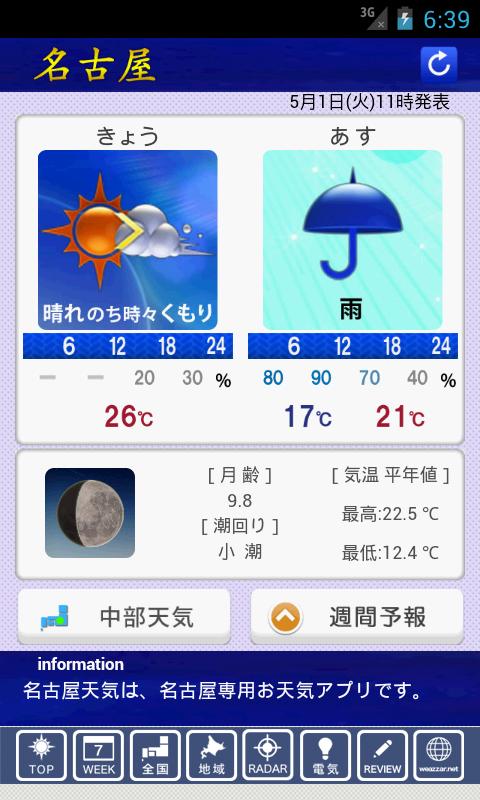 ناغويا مخصصة التطبيق الطقس. صب إرضاء الجميع ناغويا "الحب"! دعونا ركوب خارج موسم الأمطار في الرادار سحابة المطر.
