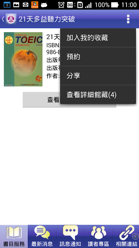 本APP提供讀者可以利用智慧型手機輕鬆快速取得圖書館相關訊息。包括館藏查詢、新書通報、主題書展、最新消息等,另外也提供個人化服務,如:預約到館通知、續借服務等。