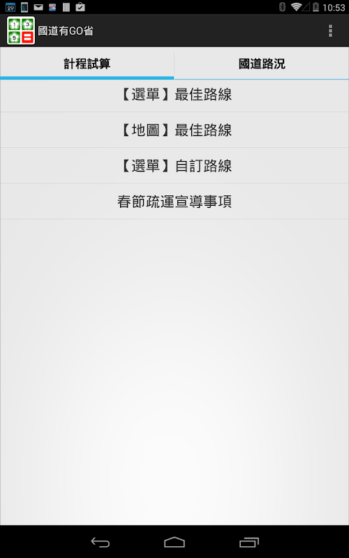 1.國道計程收費試算:最省路線規劃(地圖/選單)和自訂路線(選單)