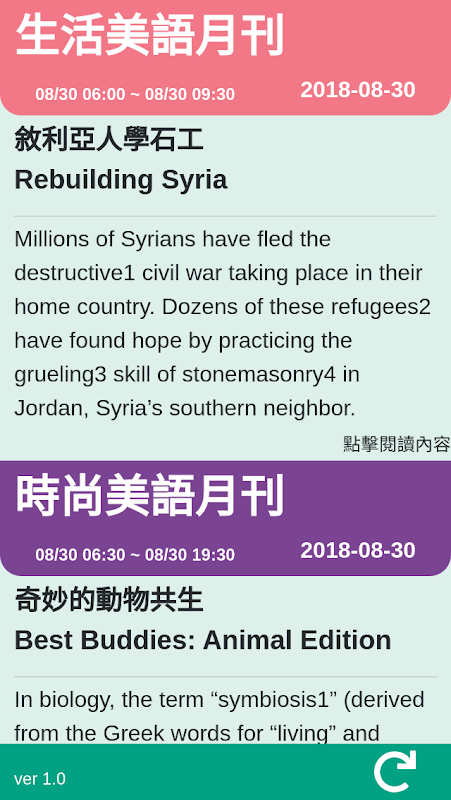 提供「地球村時尚美語」、「地球村生活美語」、「地球村生活日語」三本語言學習雜誌每日學習的音頻解說內容。