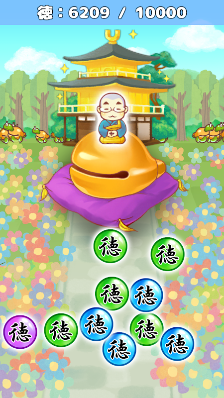 スワイプで「徳」を集めてお寺を育てましょう!