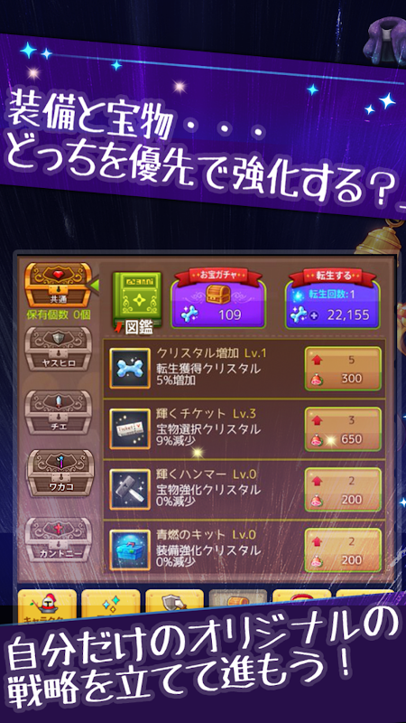 ゲーム内通貨をためて、キャラクターを強化!スキル強化!装備強化!ペット強化!