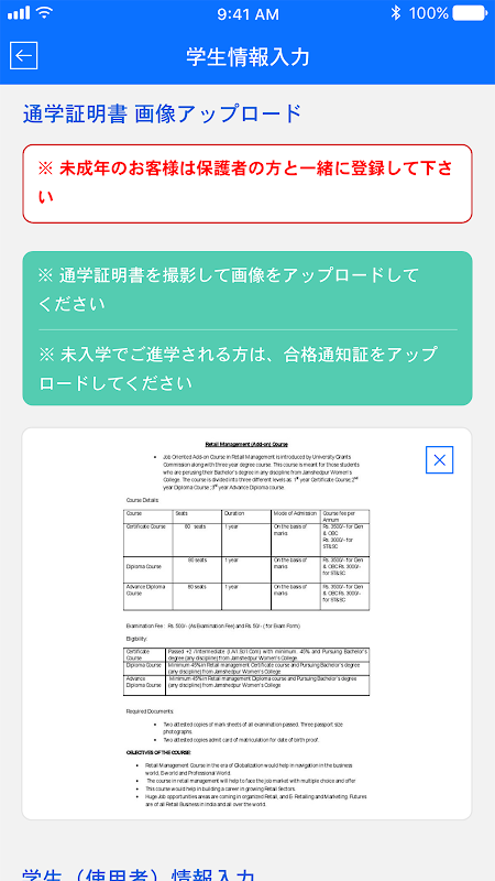 購入には通学証明書が必要です。※入学前の方は合格通知証をアップロードしてください。