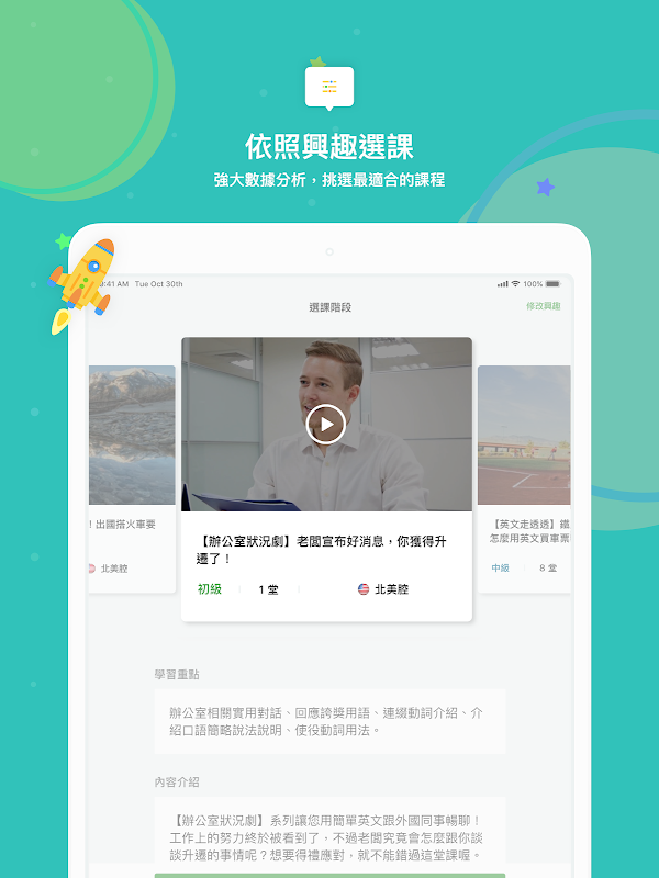 1. 學習新課程:影音學習,十秒開啟英文耳