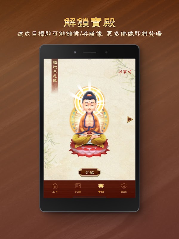 - يمكنك تحديد أهداف يومية وتسجيل عدد أسماء بوذا التي تتلى كل يوم تلقائيًا.