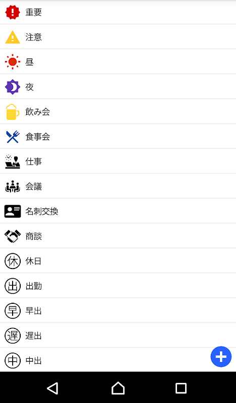 137種類のアイコンにお好きなカテゴリ名を設定しカレンダー上に表示