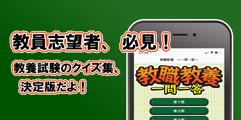 教員採用試験に対応した教職教養のクイズアプリです。小学校や中学校の教員、先生を目指している人はぜひ、本アプリをお試しください。