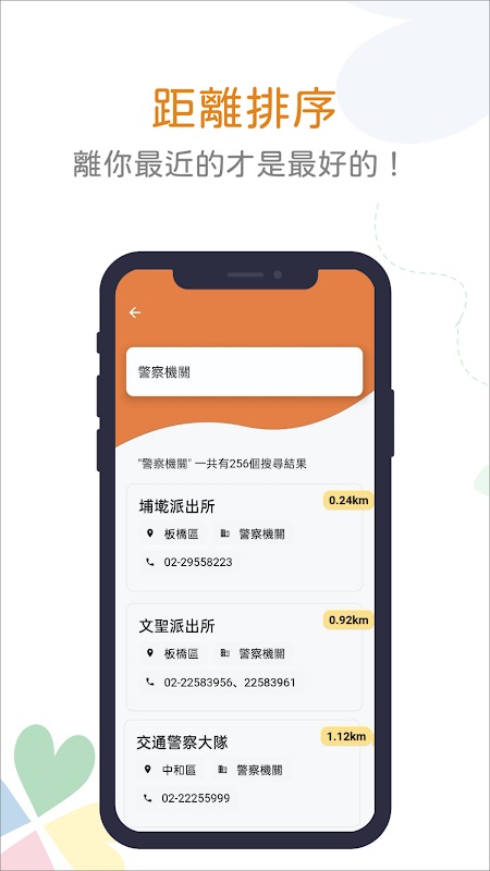 4. 依照距離遠近排序查詢出來的結果,馬上就能知道附近最近的是哪個地點