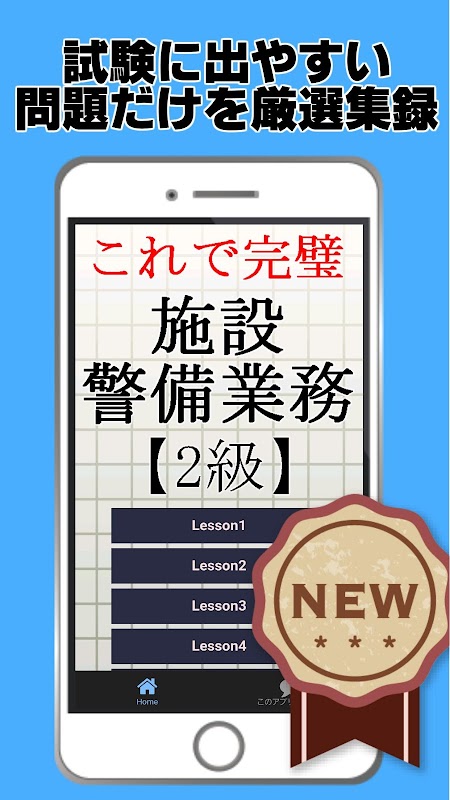 施設警備業務検定の試験対策無料アプリです。試験によく出題する問題を厳選しました。隙間時間で気軽に学習できるようにシンプルなつくりとなっております。