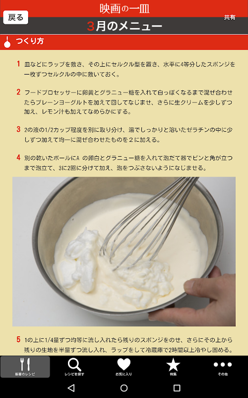 映画のタイトルや、たくさんの料理の種類の中から、180を超えるレシピを検索できます。