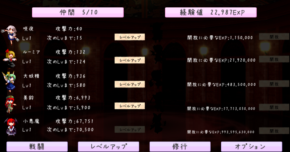 ・レベルアップボタンを長押しで一気にレベルが上がるようになりました