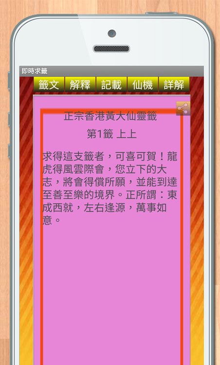 另外,本軟件支援分享功能,可以將籤文跟家人朋友分享。