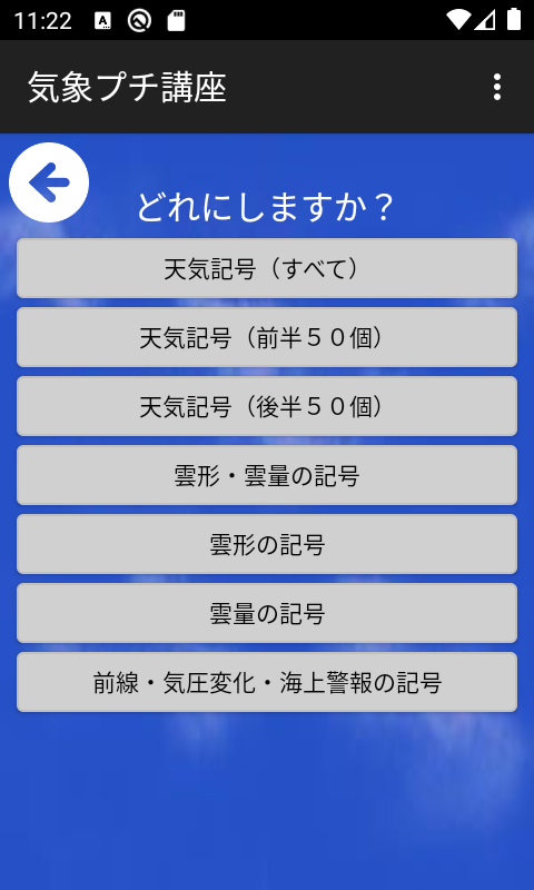 気象予報士なら誰でも知っていて当然な天気記号。でも100個もあるとなかなか覚えられません。しかも天気図には天気記号だけではなく雲量記号や雲形記号、気圧変化記号...。様々な記号を1つのアプリに収めていつでもどこでも閲覧できるようにしました。さらに効率よく覚えるならどうしたら...と考えに考えた末にクイズ機能を持たせてみました。