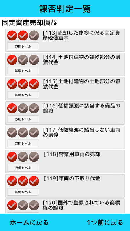 باستخدام هذا التطبيق، يمكنك البحث عن تصنيفات المعاملات الأربعة المذكورة أعلاه، وتصنيفات الشراء الخاضعة للضريبة، وأحكام المسؤولية الضريبية، وما إلى ذلك من قائمة أحكام المسؤولية الضريبية، وحل المشكلات للتدريب الفعال.