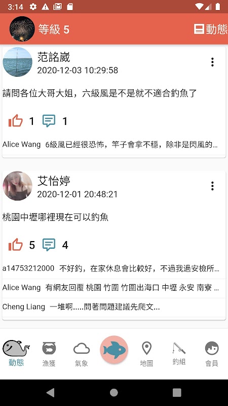 5. 釣魚專屬的即時氣象,潮汐,氣象警示。
