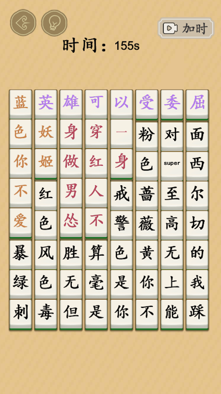 ملء الفراغات الشعرية: ستمنحك اللعبة قصيدة تفتقد بعض الكلمات، وعليك استخدام معرفتك الخاصة بالأحرف الصينية لملء الفجوات في القصيدة. يختبر هذا الوضع فهم وذاكرة الشعر والشخصيات الصينية.