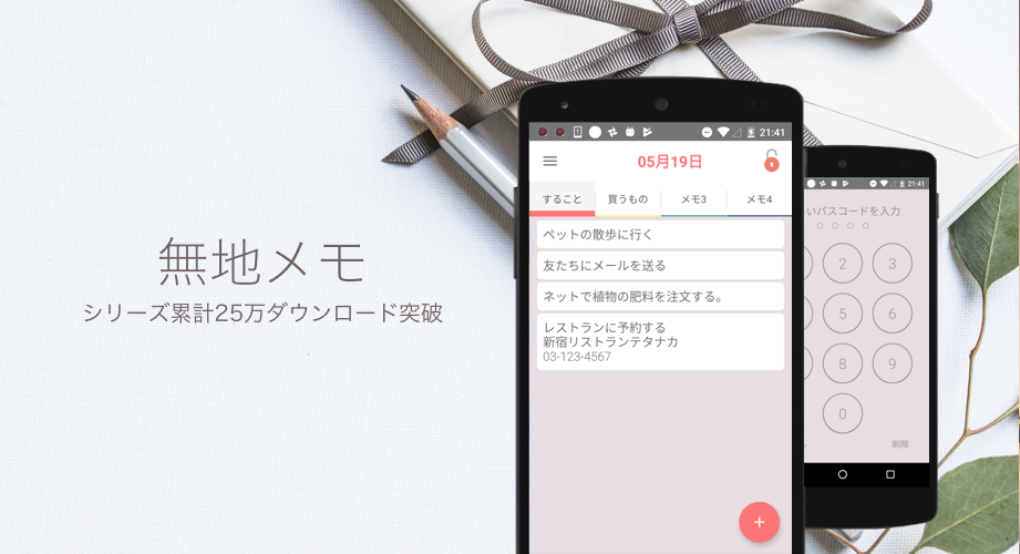 無地メモは、さくっとメモしたい人のためのかわいい無料メモ帳アプリです。