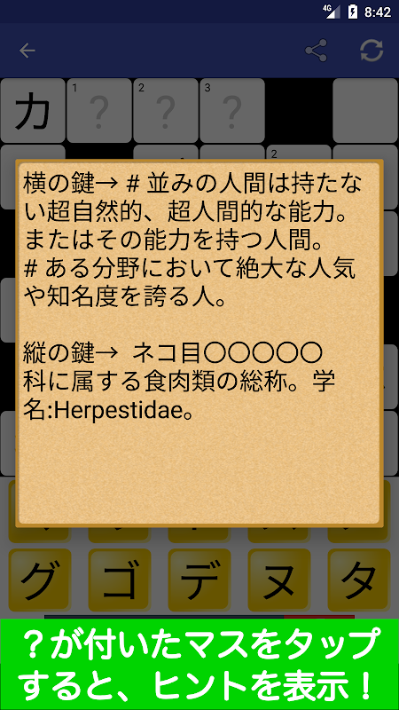 また、?をタップすると言葉のヒントを表示します。