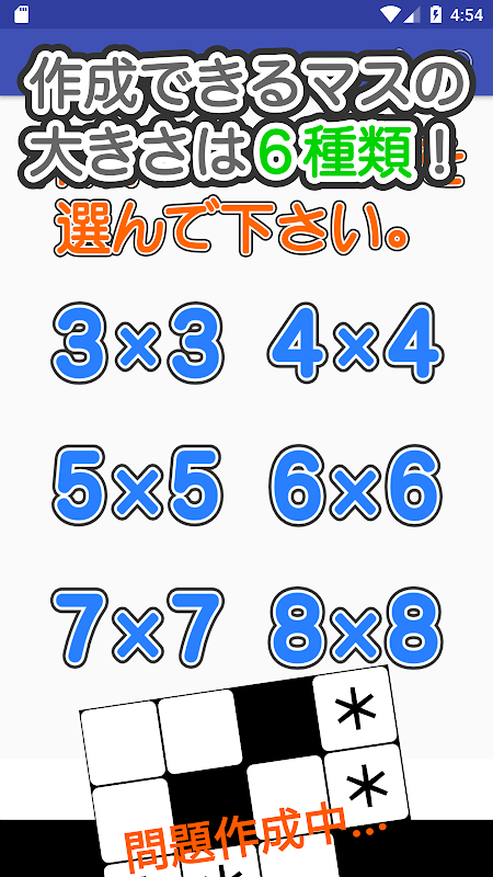 حجم لغز الكلمات المتقاطعة التي يمكنك إنشاء ستة أنواع.