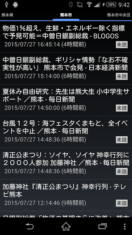 التطبيق الذي يسرد حسب المنطقة كوماموتو الأخبار وسوف قائمة الأخبار المحلية في محافظة كوماموتو. يتم سرد من قبل المدينة.
