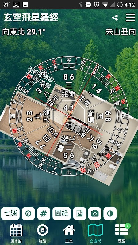 * 從裝置選取建築平面圖測量九宮分佈。