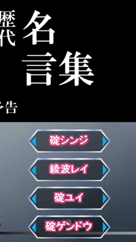 エヴァンゲリオンに関するファン度を試すクイズや名言集、相性診断ゲームの非公式アプリです。ファン度を試す幅広い知識問題を出題します。