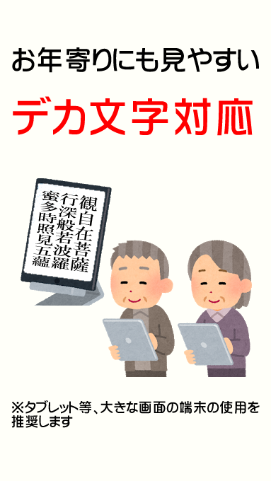※ 以前 の バ ー ジ ョ ン に お い て، ご 使用 の 携 帯 機 種 に よ っ て は お 経 が 画面 に 表示 さ れ な い と い う 問題 が あ り ま し た. 長 ら く お 待 た せ し て 申 し 訳 ご ざ い ま せ ん で し た が، 今 回 い ち か ら 作 り 直 し を 行 い 問題 の 修正 を い た し ま した。