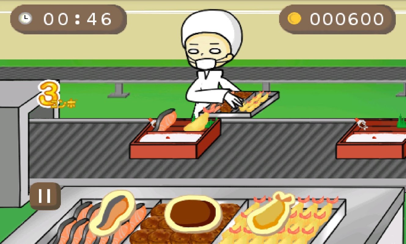 流れてくる弁当箱にひたすら具材を詰めていくゲームです