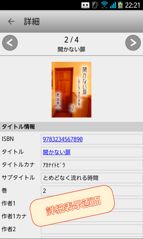 また、端末のカメラを使ったバーコードリーダーを装備しており、本の裏表紙に印刷されているバーコードを読み取って検索することもできます。