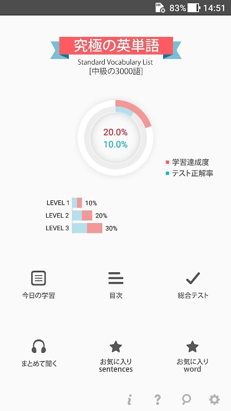 ・ يمكنك استخدام وظائف التطبيق الفريدة مثل الاختبارات المختلفة ، والاستماع مرة واحدة ، والمفضلة ، ودفع إنذار التعلم ، وجدول الدرجات ، وما إلى ذلك وفقًا لأسلوب التعلم الخاص بك.