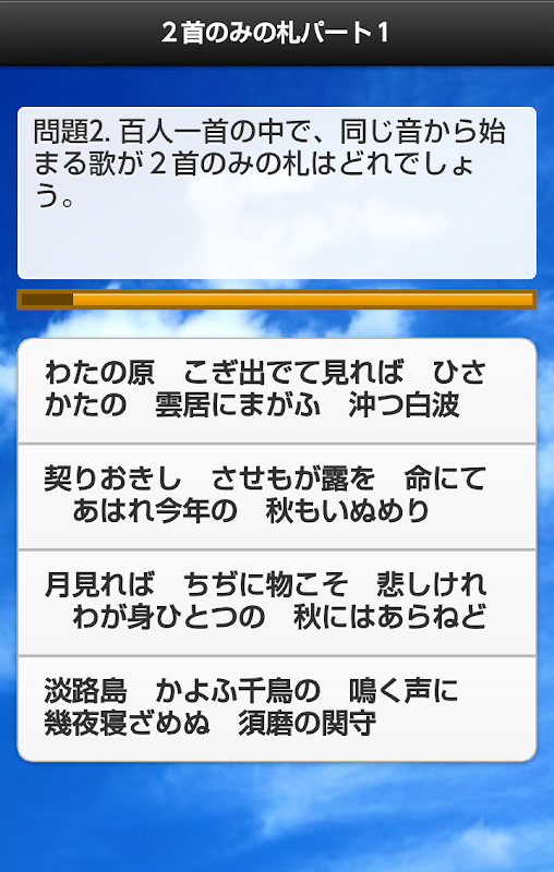 同じ音で始まる歌が2首のみの札は、5種類で、