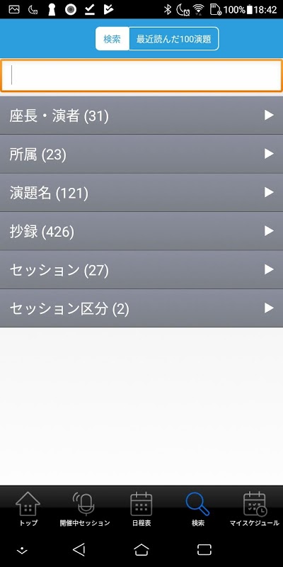 会期中、その時刻に発表されているセッションが一覧表示します。