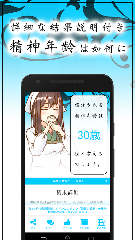 "التشخيص العمر العقلي"، لتشخيص حجم الفجوة بين العقل والجسم. المؤيدون الظواهر سلسلة التشخيص تصدرت الإجمالية 8.2 مليون التنزيلات ♪