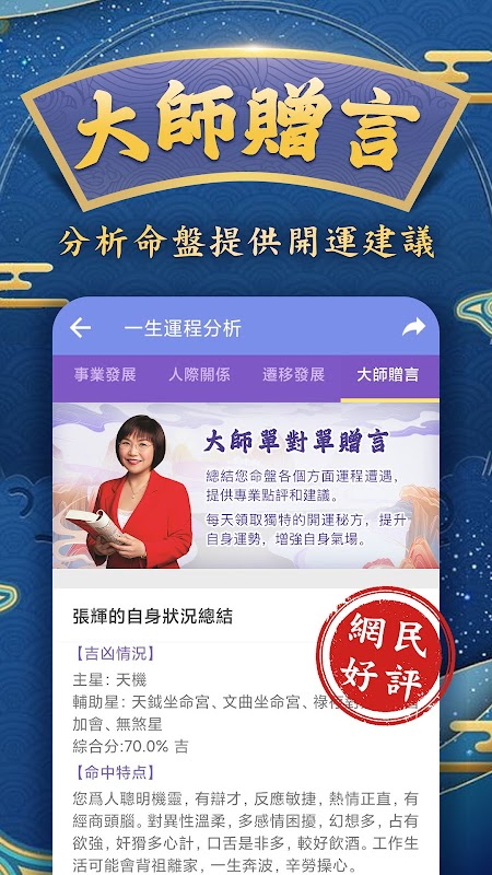 [Ziwei Mingpan] هو فريق دعم وتوجيه خاص بفريق الأعداد التايواني ، جنبًا إلى جنب مع ذكاء الهاتف المحمول لإنشاء تطبيق Ziwei للعرافة ، ما عليك سوى إدخال أربعة معلمات للعام والشهر واليوم ووقت الميلاد (عيد ميلاد ثمانية أحرف) .زودك بمخطط Ziwei Doushu الاحترافي ، وتوقع شخصيتك ، وزواجك ، وحياتك المهنية ، وثروتك وغيرها من مواقع النجوم الرئيسية في علم الأعداد واتجاهات التنمية المستقبلية من خلال مخطط Ziwei.