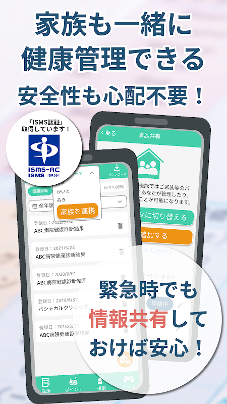 高齢の方や小さなお子様の代わりにデータ登録することもできるので、介護や育児にも役立ちます。