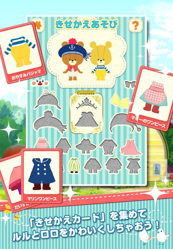 ゲーム中に見つかる「きせかえカード」をあつめて、ルルとロロを可愛くきせかえしちゃおう!