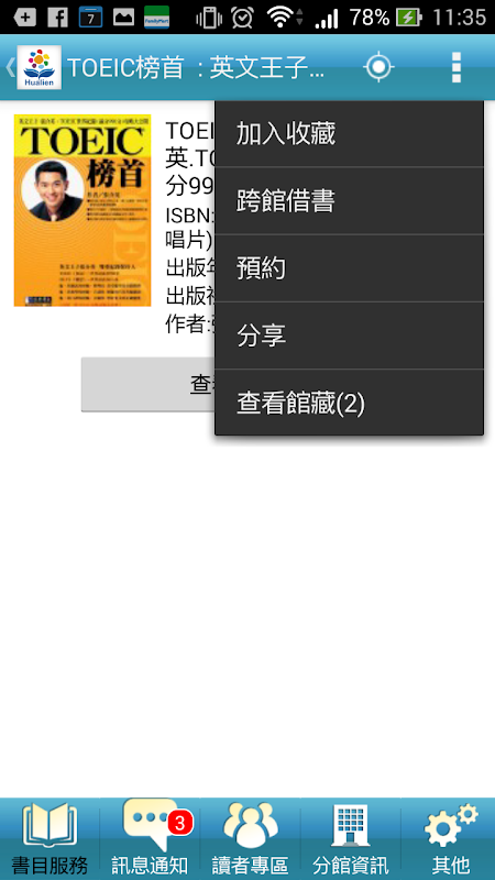 「花蓮縣行動圖書館」為所有縣民提供便利的知識管道,配合LBA定位服務功能,除可查詢花蓮縣公共圖書館豐富的圖書資源與館藏外,亦可計算出與您距離最相近,且書籍在館內的分館,讓您可更精確掌握知識動向。此外,讀者更可透過此軟體進行個人化服務,如接收預約到館通知、預約服務、通閱服務等。眾多令人驚豔的功能項目等您親自體驗。