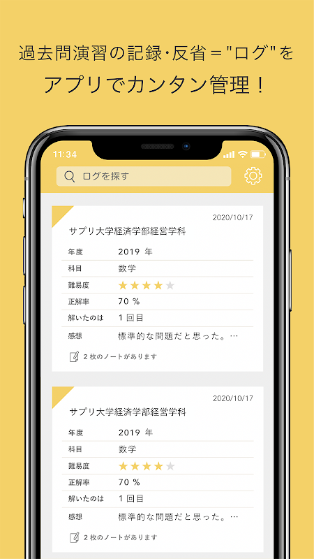 【過去問演習したノートやメモなどの記録をアプリに保存できるから管理がラクラク♬】